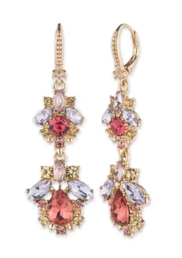 Gold Tone Stone Double Drop Earrings