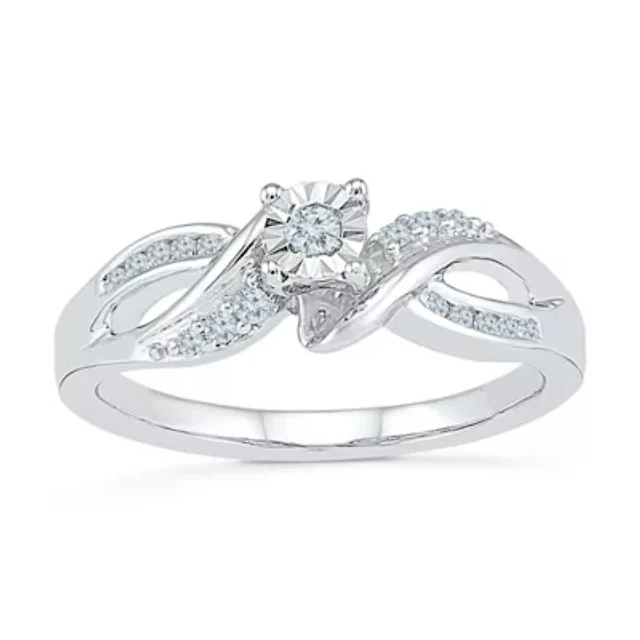 Womens 1/5 CT. Genuine Blue Aquamarine 10K White Gold Halo Crossover Cocktail Ring