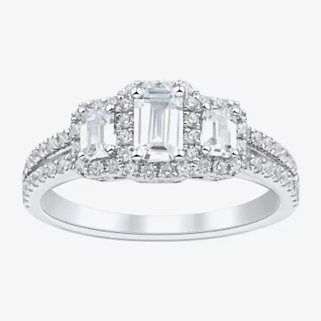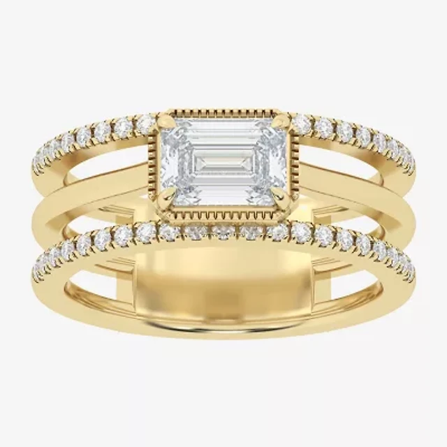 (I / Si2) Womens 2 CT. T.W. Lab Grown White Diamond 10K Gold Side Stone Engagement Ring