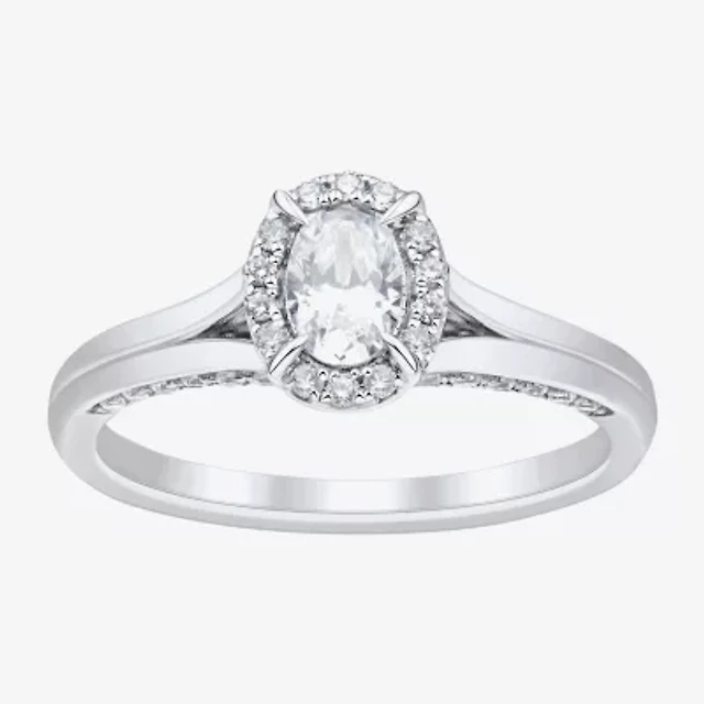 Signature By Modern Bride (G-H,Vs2-Si1) Womens 1 1/2 CT. T.W. Lab Grown White Diamond 14K Gold Oval Halo Engagement Ring