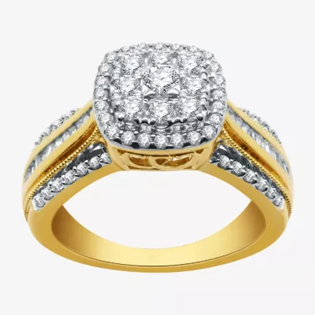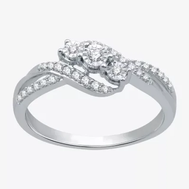 Womens Lab Created White Moissanite 10K Gold 3-Stone Engagement Ring