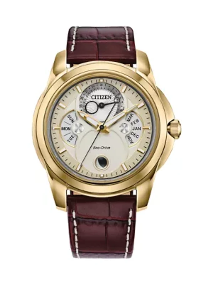 Men's 41.8 Millimeter Classic Calendrier Brown Strap Watch
