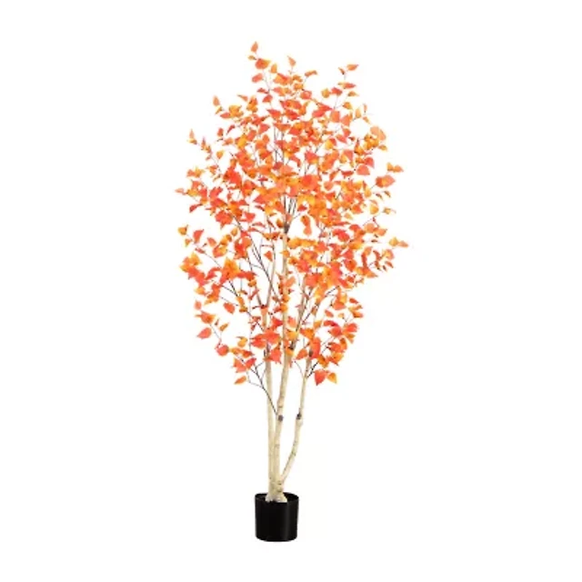 Nearly Natural 7' Orange Autumn Birch Indoor Artificial Tree