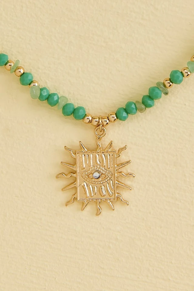 Buy Gold Multi Stone Sun Pendant Triple Layered Necklace Online at Earthbound Trading