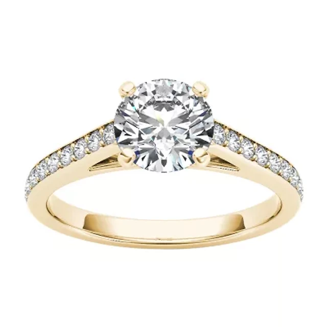 Womens CT. T.W. Natural White Diamond 14K Gold Round Side Stone Engagement Ring