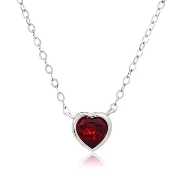 MAX + STONE Solid 14k White Gold Pink Amethyst Bezel Set Heart Pendant Necklace for Women with Spring Ring Clasp 5mm February Birthstone
