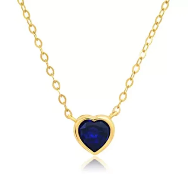 MAX + STONE Solid 14k Yellow Gold Created Blue Sapphire Bezel Set Heart Pendant Necklace for Women with Spring Ring Clasp 5mm September Birthstone
