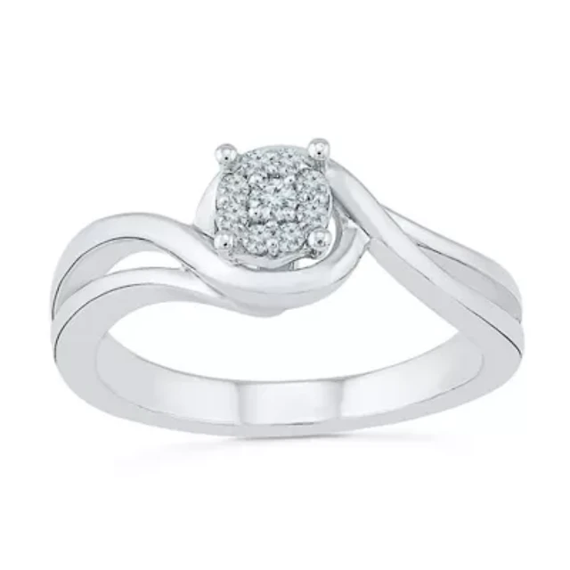 Promise My Love Womens 1/10 CT. T.W. Natural White Diamond Sterling Silver Round Halo Ring