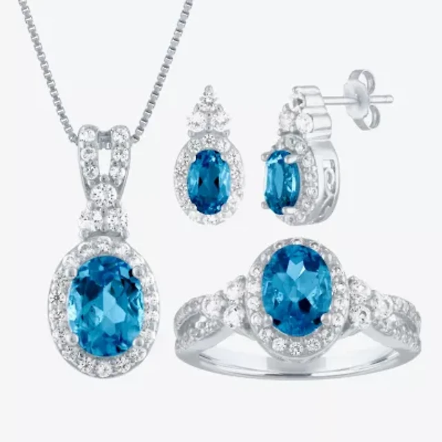 Womens Lab Created Green Emerald Sterling Silver Jewelry Set
