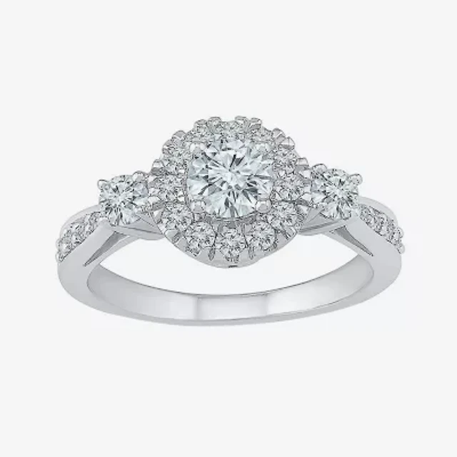 Promise My Love Womens 1 CT. T.W. Natural White Diamond 10K Gold Round Side Stone 3-Stone Engagement Ring