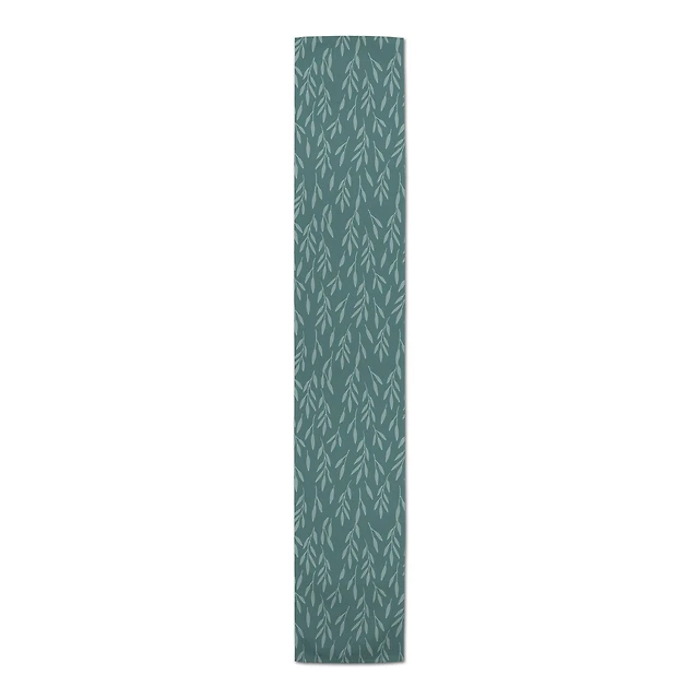 72" Navy Blue Leaf Pattern Cotton Twill Table Runner