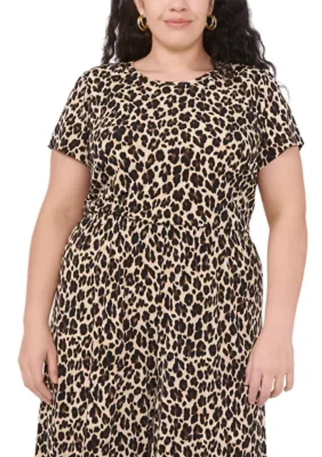 Plus V-Neck Printed Smocked Waist Midi Dress