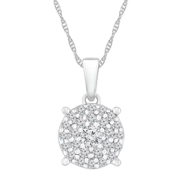 Diamond Blossom Womens /4 CT. T.W. Natural White Diamond 10K White Gold 18 Inch Pendant Necklace