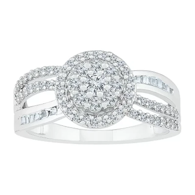 Diamond Blossom Womens 1/ CT. T.W. Natural White 10K Gold Halo Cocktail Ring