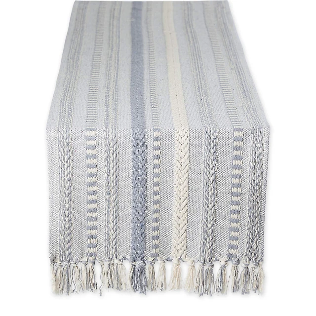 DII® 72" Blue Tonal Stripe with Fringe Table Runner