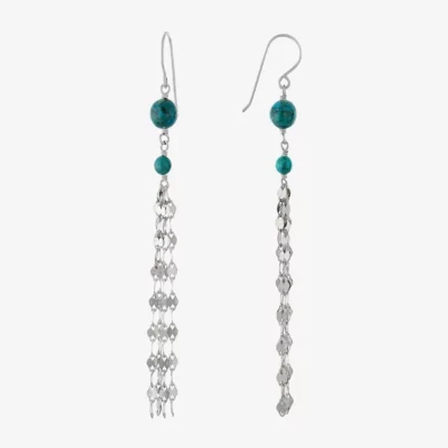 Womens Lab Created Blue Ceylon Sapphire Sterling Silver Drop Earrings