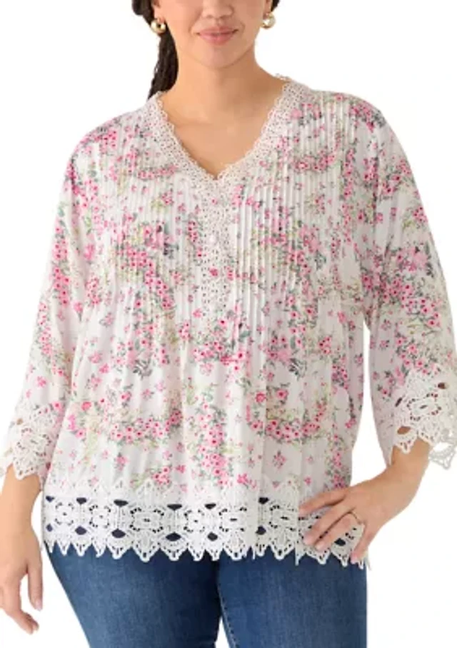 Plus Floral Georgette Ruffle Trim Blouse