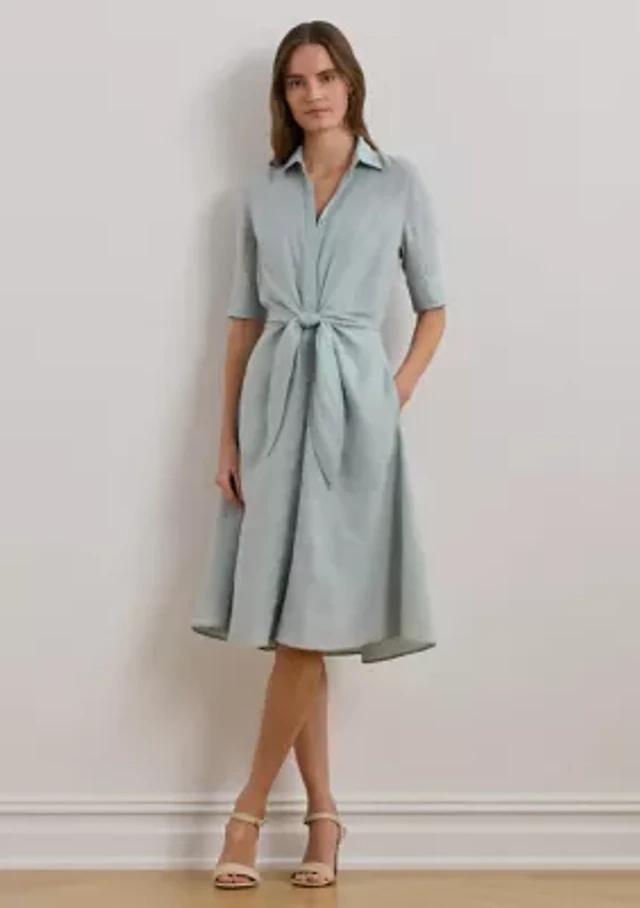 Plus-Size Tie-Front Linen Shirtdress
