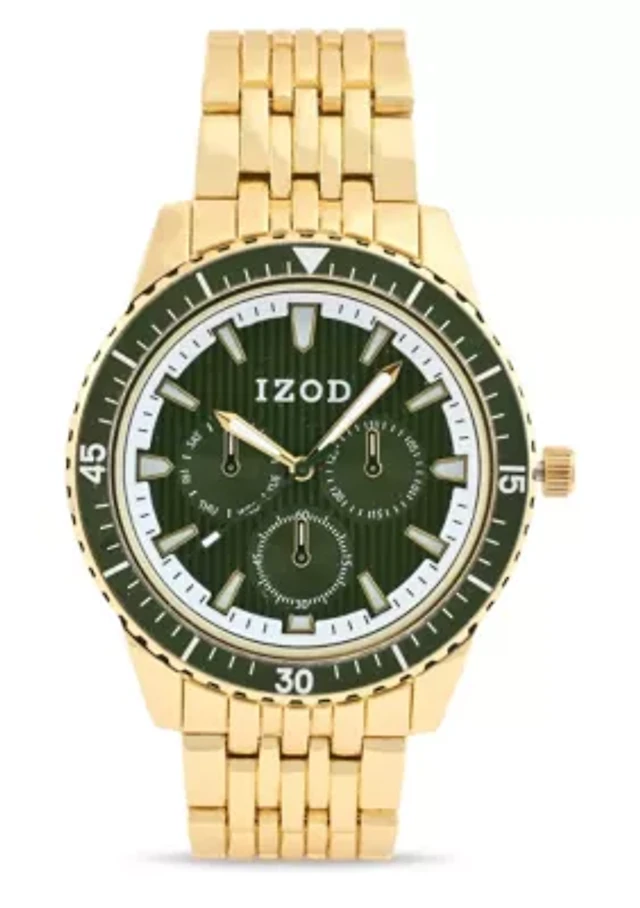 IZOD Adult Mens Analog Watch w Green Rubber Strap in Gold Model# IZO9432