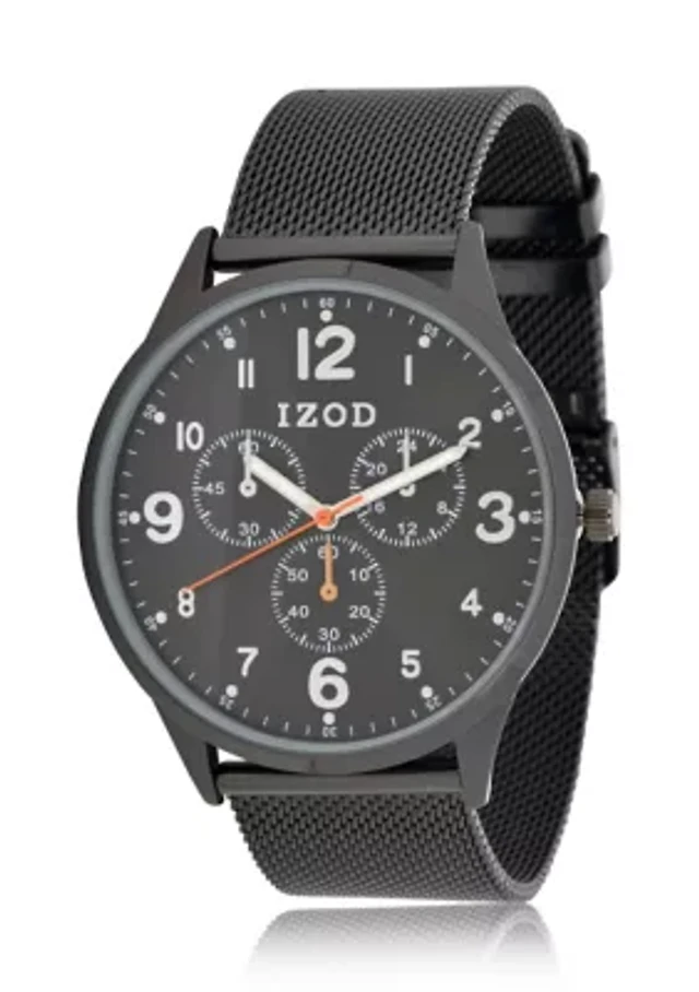 IZOD Black Mesh Sport Bracelet Watch
