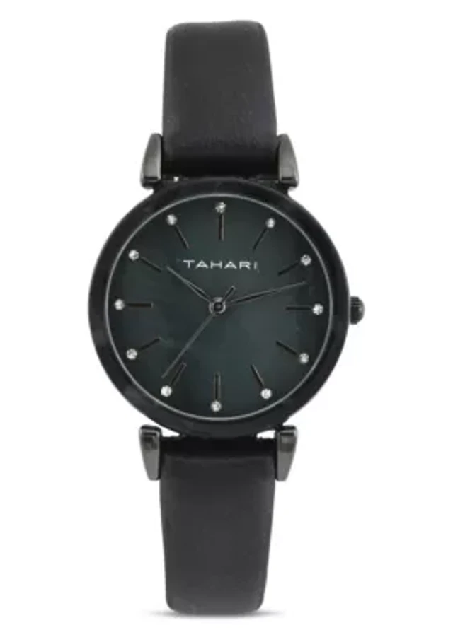 Tahari Adult Womens Analog Watch w Gunmetal Case and Black Strap Model# TAH3050