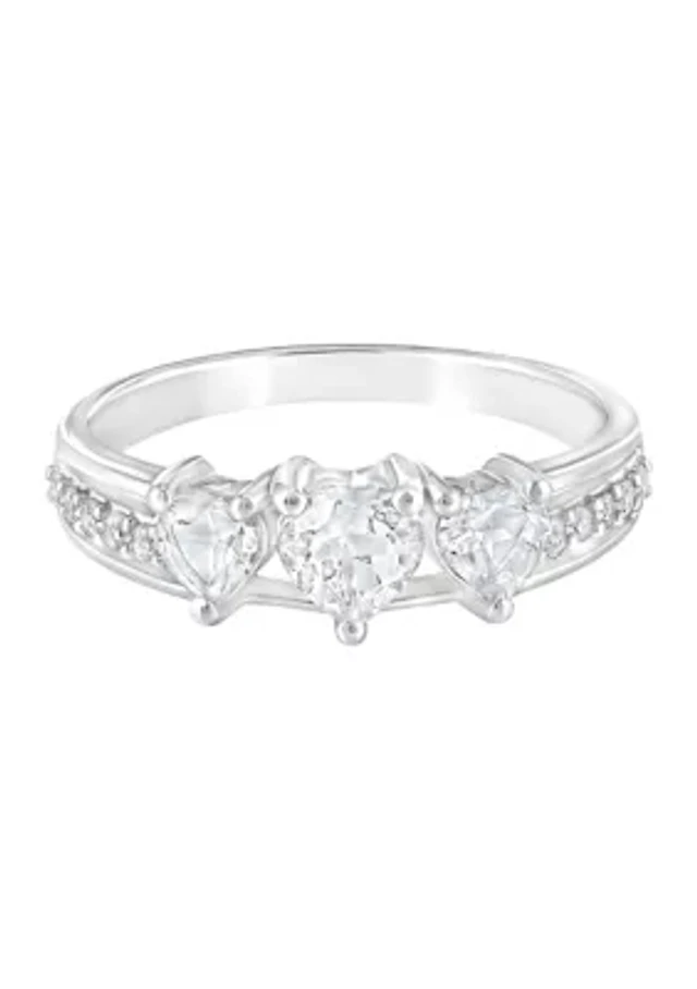 Sterling Silver Cubic Zirconia Three Heart Ring