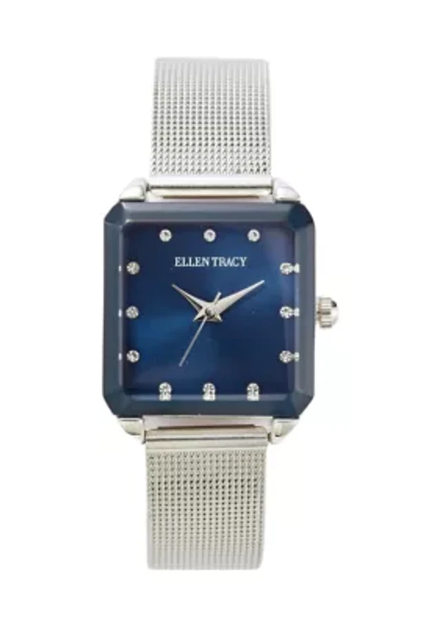 Silver Tone 33 Millimeter Square Case Crystal Mesh Watch