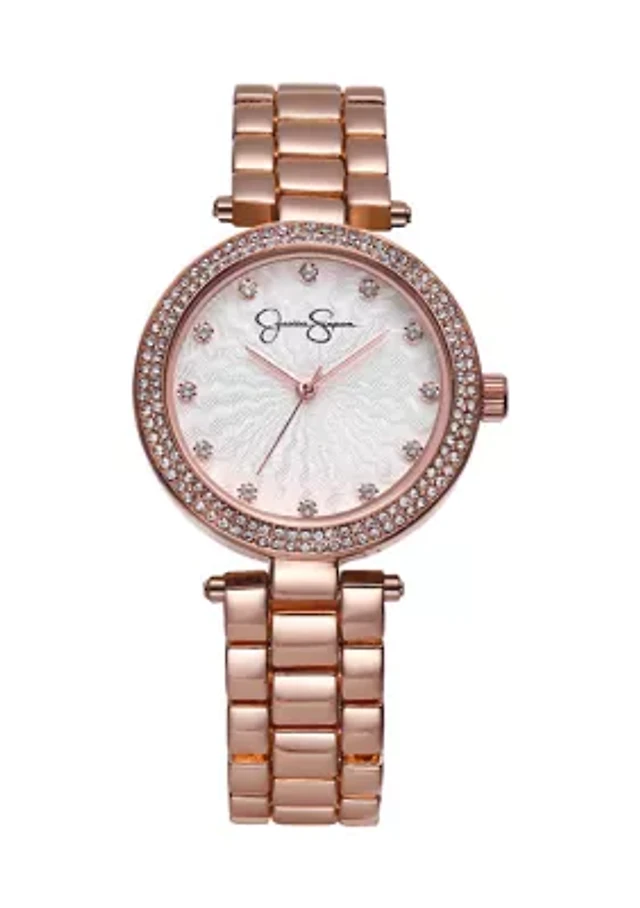 Silver Tone Rose Mettalized Bezel Bracelet Watch