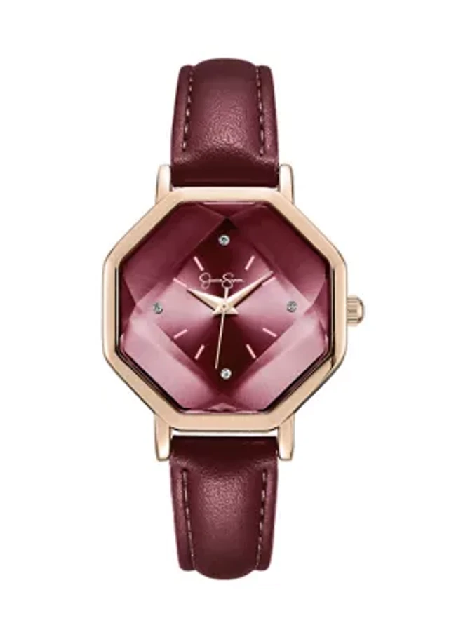 Rose Gold Tone Faceted Bezel Watch