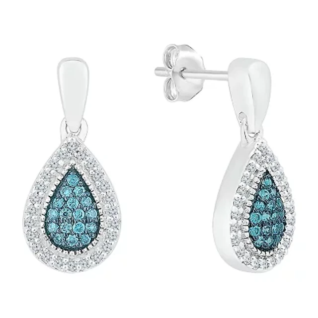 Womens Lab Created White Opal 14K Gold Over Silver Drop Earrings