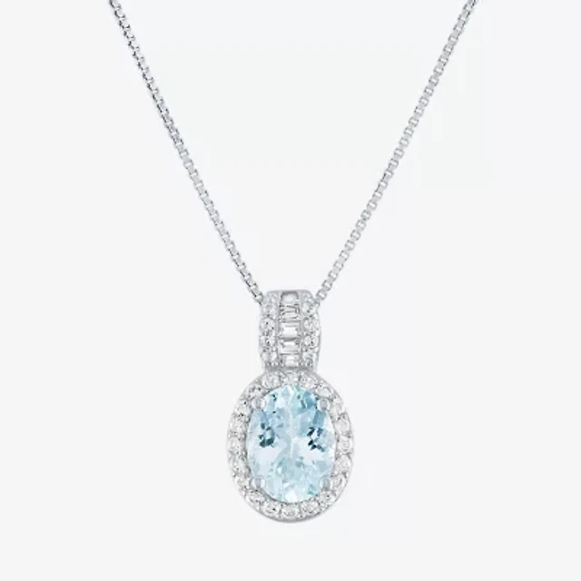 Womens Genuine Blue Topaz Sterling Silver Hamsa 18 Inch Pendant Necklace