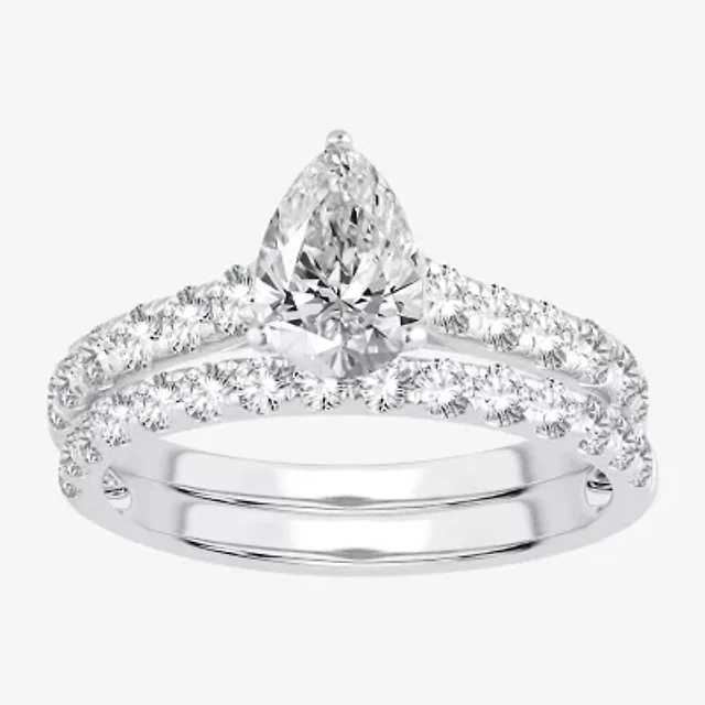 (H-I / SI1-SI2) Signature By Modern Bride Womens 2 CT. T.W. Lab Grown White Diamond 14K Gold Pear Bridal Set