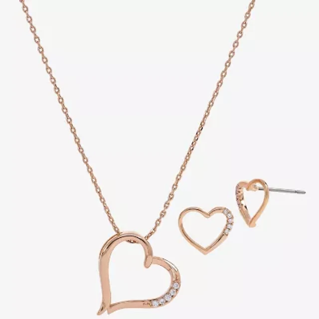 Sparkle Allure Womens Cubic Zirconia 18K Rose Gold Over Brass Heart 2-pc. Jewelry Set