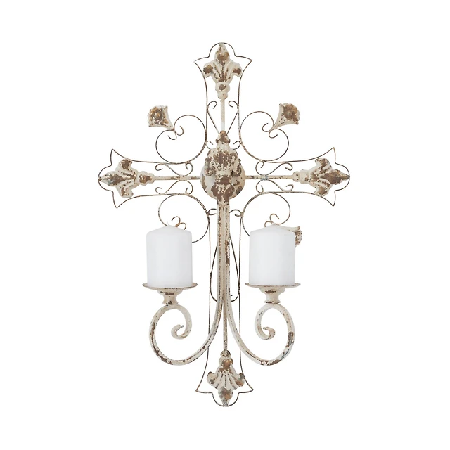 White Iron French Country Candelabra, 18" x 23" x 8"