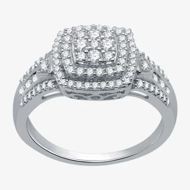 Womens 1/7 CT. T.W. Natural White Diamond Cluster Halo Cocktail Ring Sterling Silver or 14K Gold Over