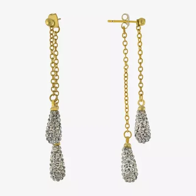 1928 Gold Tone Womens Green Crystal Drop Earrings