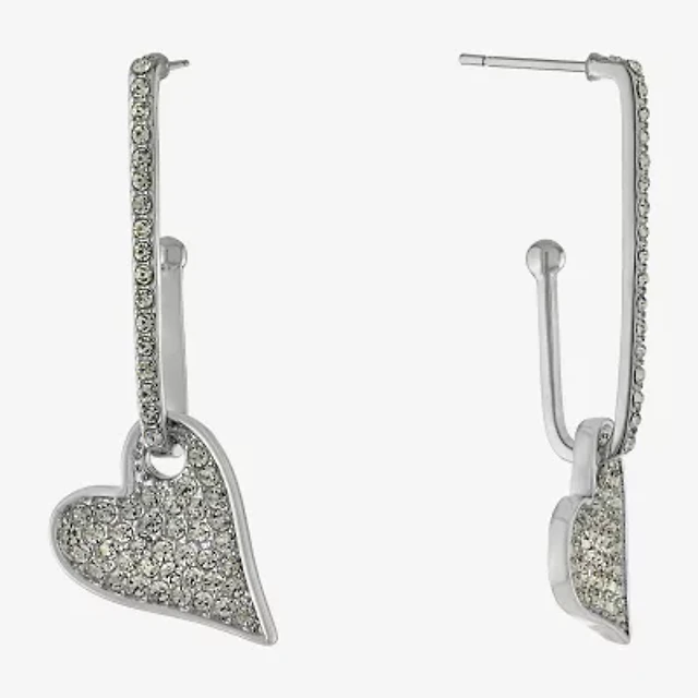 1928 Silver-Tone Womens Crystal Round Drop Earrings
