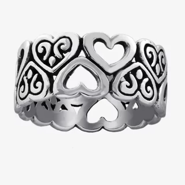 Bali Inspired Womens Sterling Silver Heart Cocktail Ring