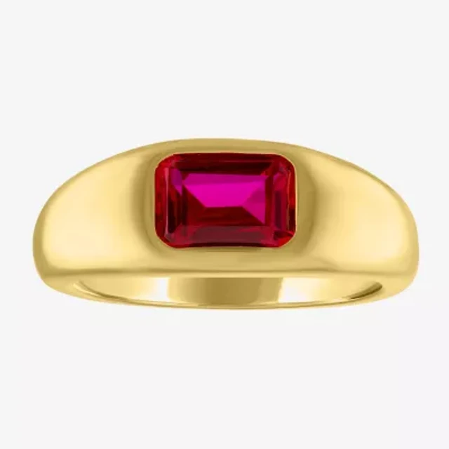 Womens Lab Created Pink Sapphire 14K Rose Gold Over Silver Cushion 3-Stone Side Stone Cocktail Ring