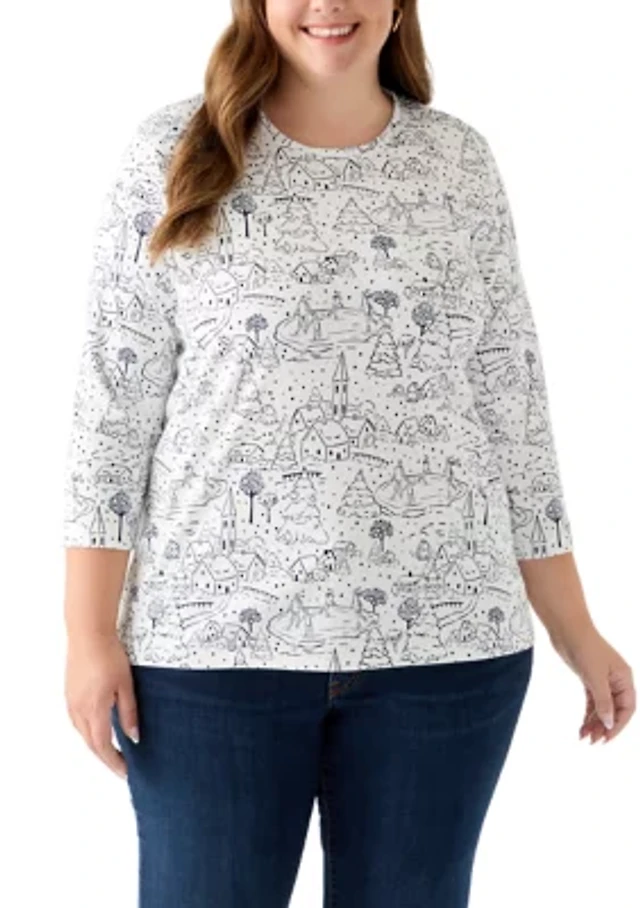 Plus Short Sleeve Ruffle Printed T-Shirt