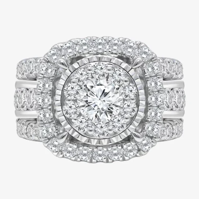(H-I / Si1) Womens 1 3/4 CT. T.W. Lab Grown White Diamond 14K Gold Oval Round Side Stone Halo Engagement Ring