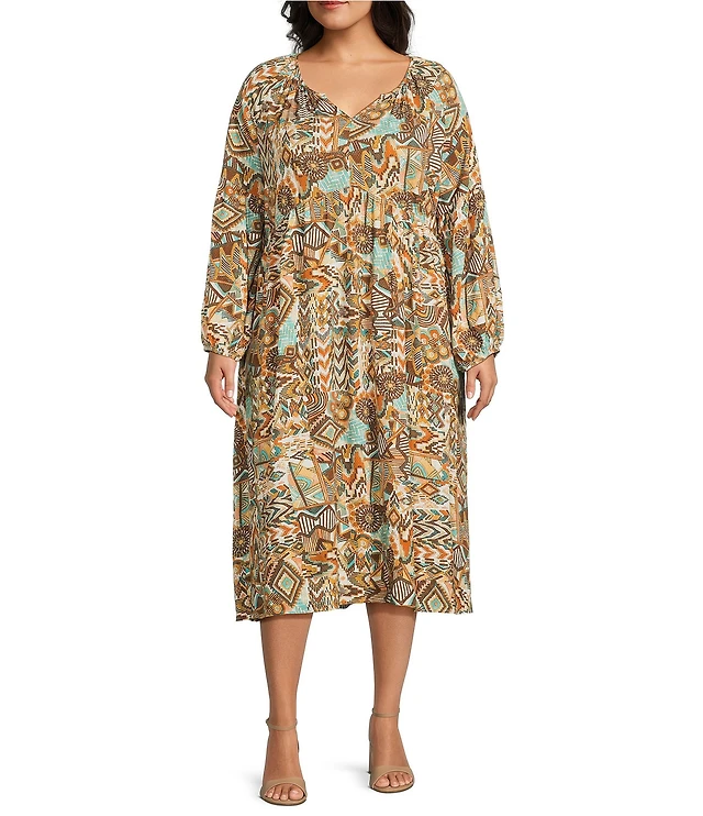 Layered With Love Plus Size Printed Chiffon Puff Long Sleeve Smocked Waist Maxi Dress