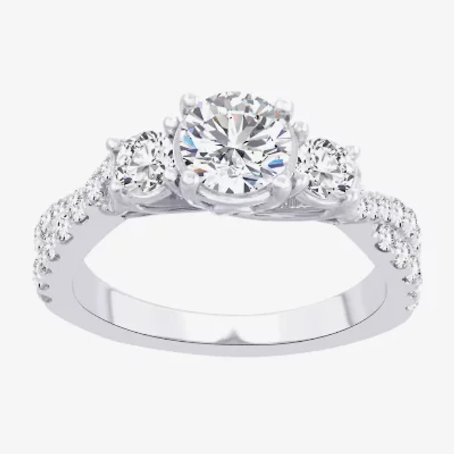 (H-I / I1) Womens 2 3/4 CT. T.W. Lab Grown White Diamond 10K Gold Side Stone Engagement Ring