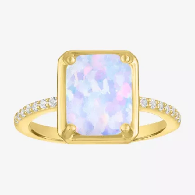 Womens Lab Created White Opal 14K Gold Over Silver Side Stone Cocktail Ring