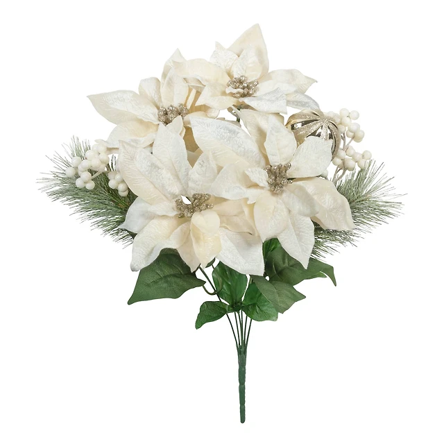 21.5" Champagne Poinsettia & Ornament Mix Deluxe Bush by Ashland®