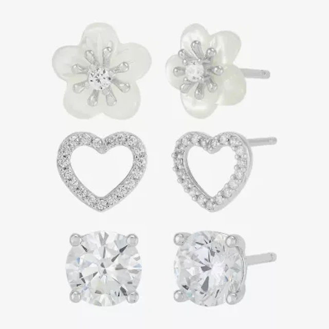 Silver Treasures Womens Cubic Zirconia Sterling Silver Heart 16 Inch Pendant Necklace