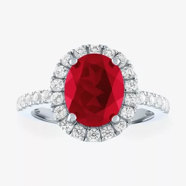 Signature By Modern Bride (H-I / Si2) Womens 2 CT. T.W. Lab Grown White Diamond 10K Gold Oval Side Stone Halo Engagement Ring