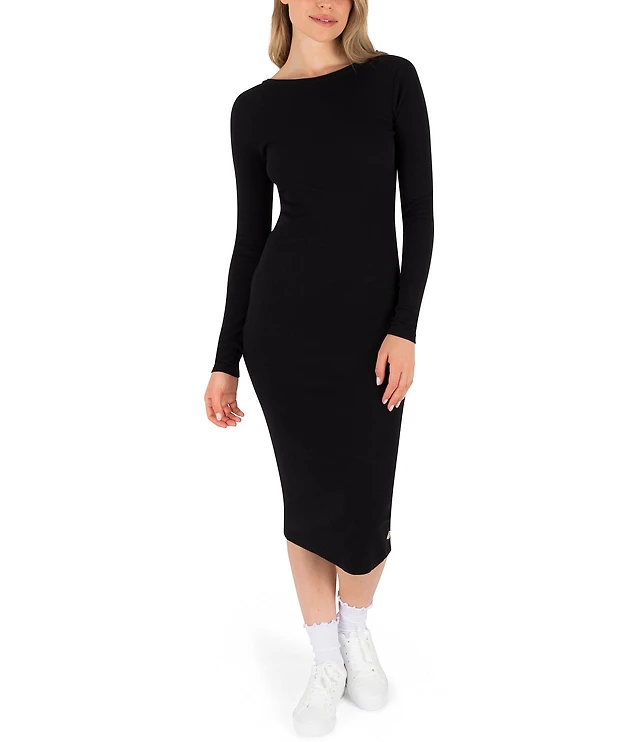 Reba Dustwood Mesh Mock Neck Long Sleeve Midi Sheath Dress