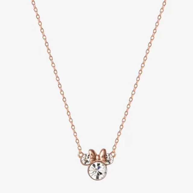 Disney Collection Girls White Crystal 14K Rose Gold Over Silver 15 Inch Pendant Necklace