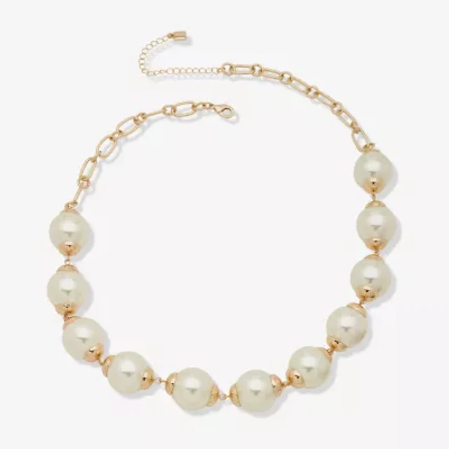 1928 Silver-Tone Womens White Round Stretch Bracelet